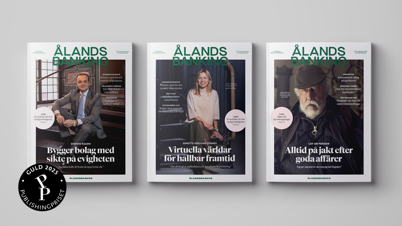 Ansvarsfull, personlig och ambitiös – Ålandsbankens ledord präglar också Ålandsbanking – ett högkvalitativt affärsmagasin producerat i fyra editioner och två språk för bankens kunder på marknaderna Åland, Finland och Sverige.